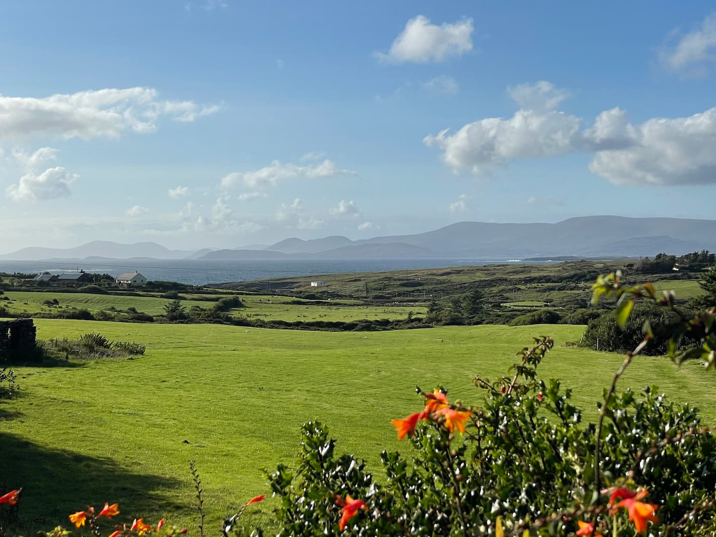 Wir geniessen den so tollen Blick vom Fenster hinaus aufs Meer, entspannen in dem kleinen verwunschenen Garten, der die Handschrift von der Regina trägt und uns mit Blüten und Pflanzen so oft an sie erinnert. Wir finden dort immer zurück zur Ruhe und Gelassenheit bedingt durch das entspannte Umfeld mit den Wiesen und Schafen, dem Strand und den kleinen und größeren Hügeln. Die Pfade führen uns nach Eyeries oder Allihies, manchmal auch rüber nach Castletownbere. Ein besonderes Highlight jedes Jahr ist für uns der Trip rüber nach Bear Island, totale Stille dort, fast nur Naturgeräusche auf der zum Meer zugewandten Seite.