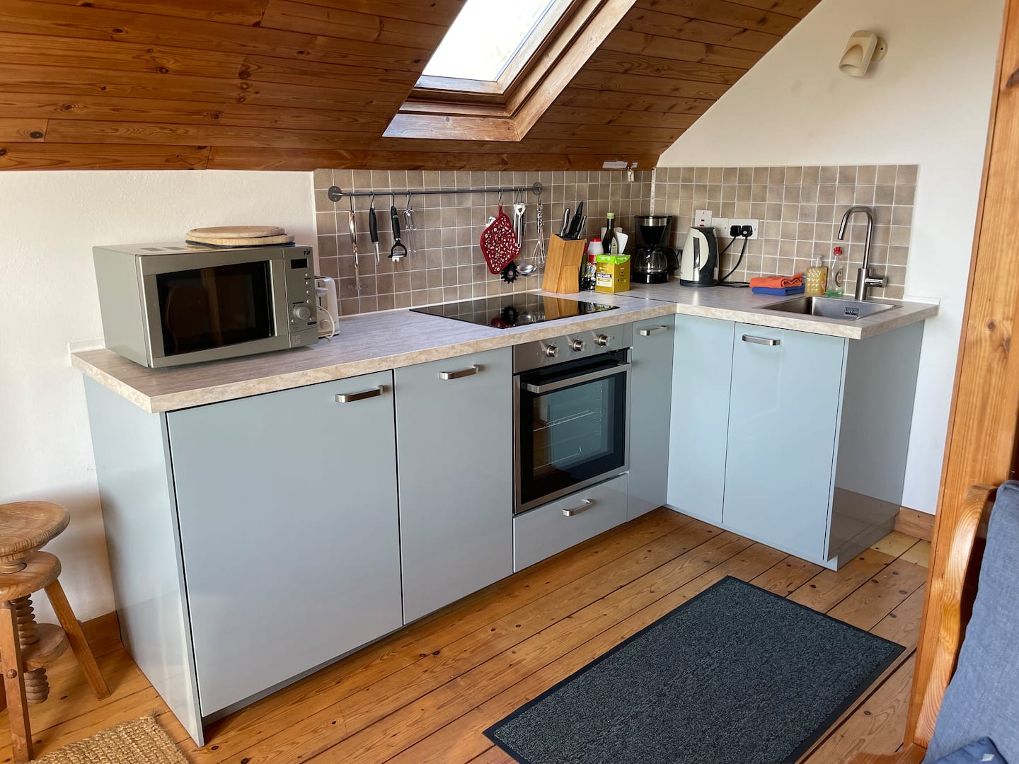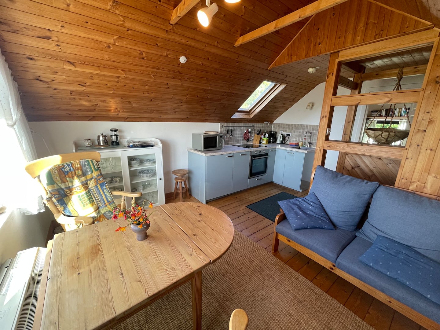 Sie wohnen auf 60m² in zwei Etagen. Sie verleben einen wunderbaren, romantischen Urlaub zu zweit. Obwohl bis zu 4 Personen Platz finden.